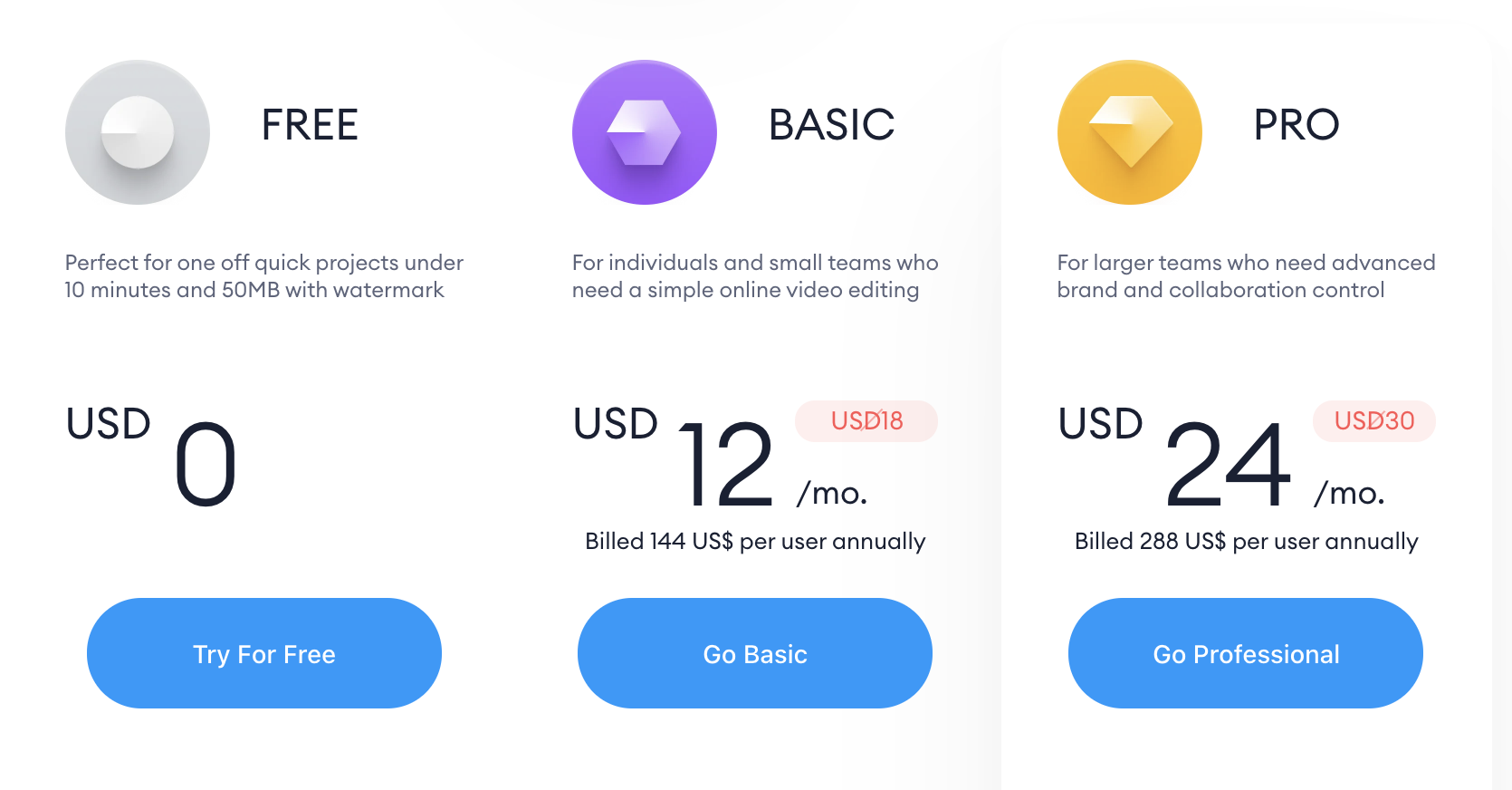 Como puedes ver, Veed tiene unos planes de precios muy asequibles para los creadores de contenido. Desde solo 12$ al mes (plan de pago) puedes crear contenido, añadir subtítulos y hacer multitud de acciones en su plataforma.