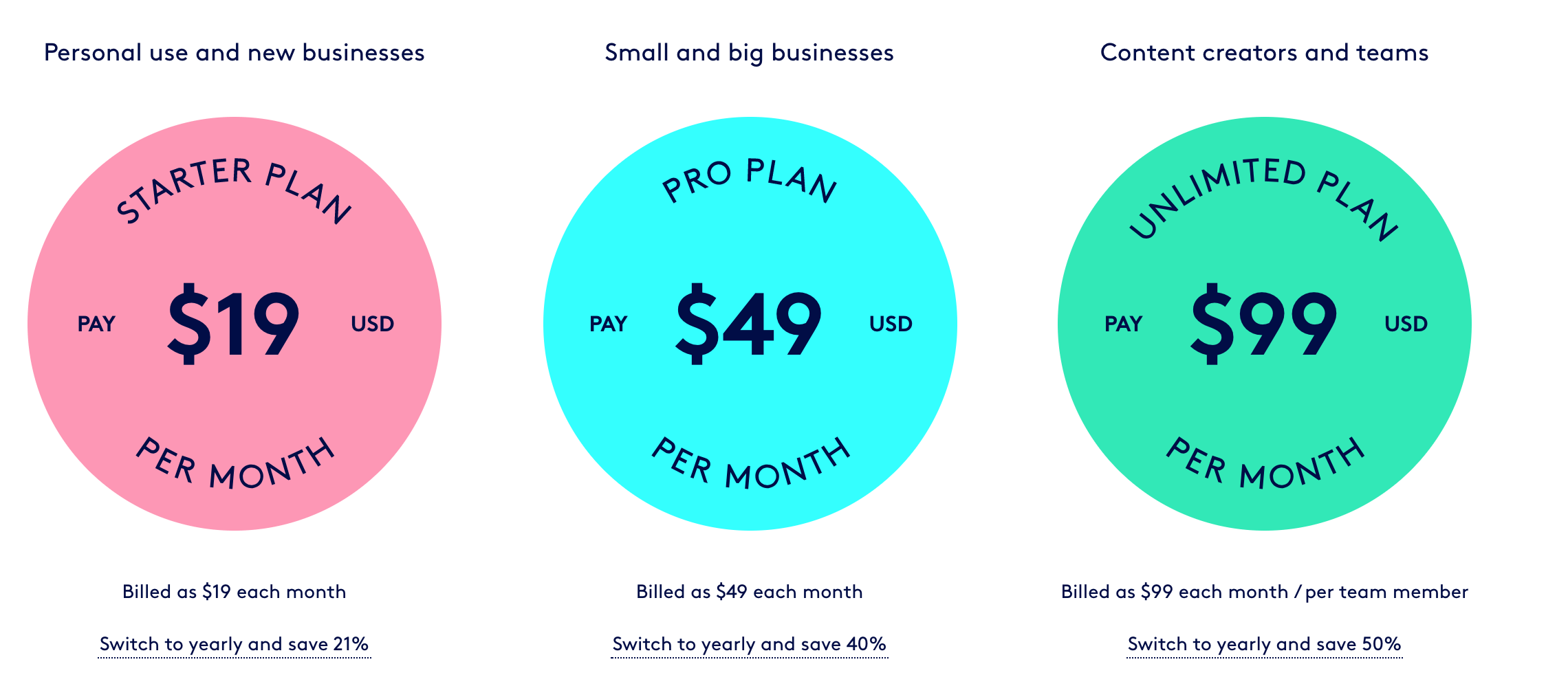 Aquí tienes las tarifas. Como puedes ver, descuentos si escoges el plan anual.